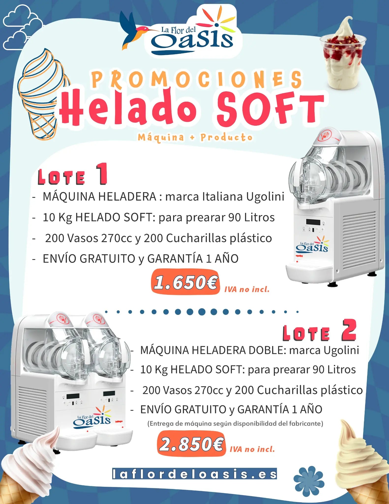 Disfruta de nuestro cremoso Helado SOFT perfecto para condimentar al gusto con la promoción que incluye: Heladera + Producto